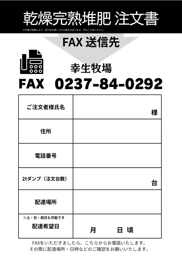 幸生牧場へFAX(0237-84-0292)にてお申し込みください。